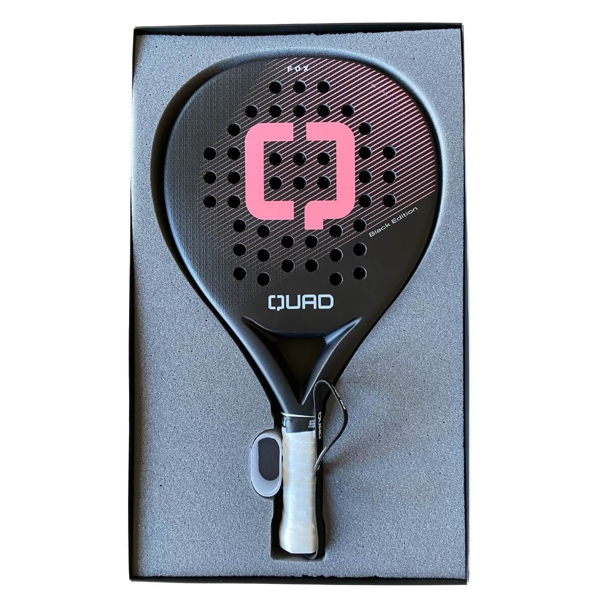 The Quad Fox Black Edition padel racket is part of the new Black Edition collection, the first produced in Portugal. The racket is designed for attacking players and is a smooth, lightweight racket with a lot of power. The sweet spot provides extra precision during the game. This test racket is in excellent condition, without damage from use.